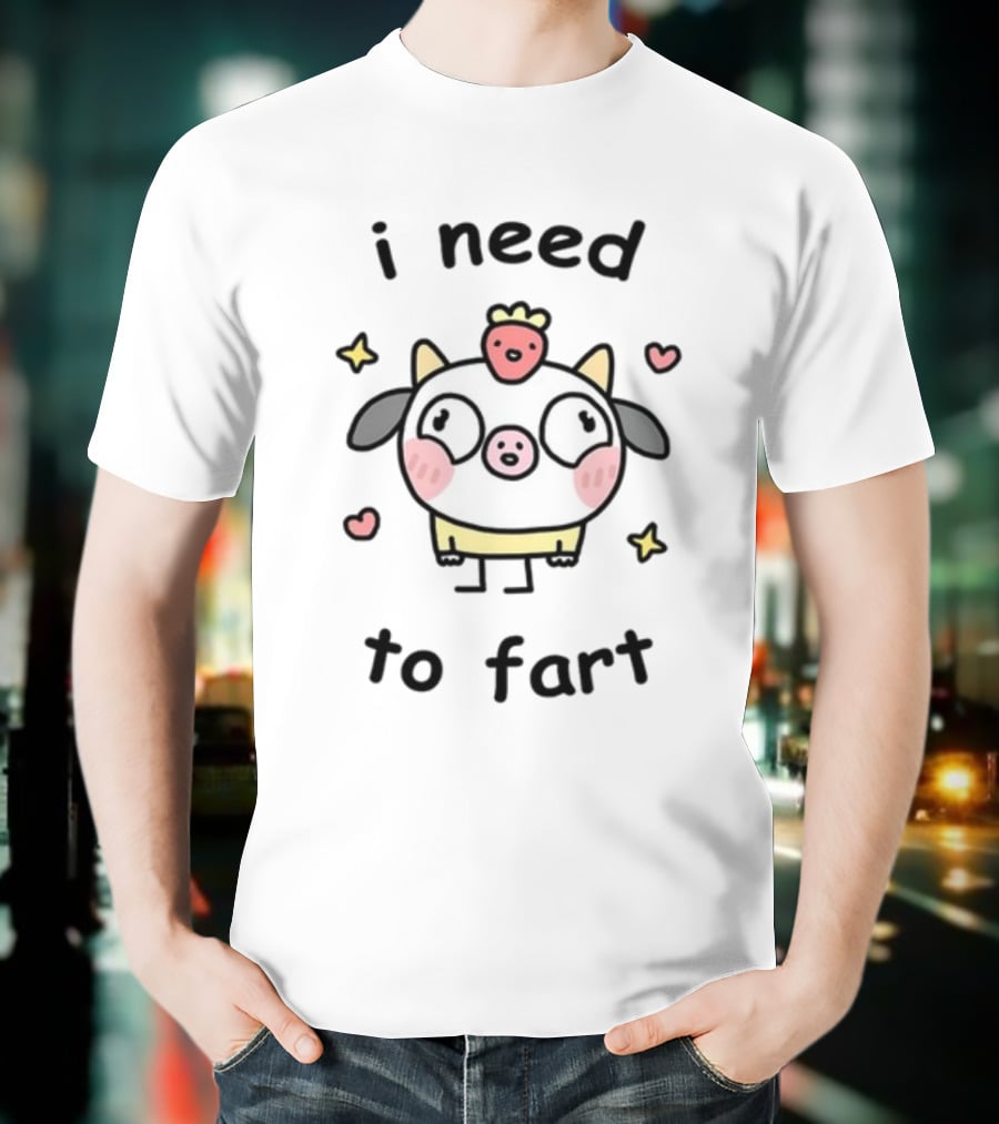 Stinky Katie I Need A Fart Cute Cartoon Pig With Hearts And Stars T-Shirt
