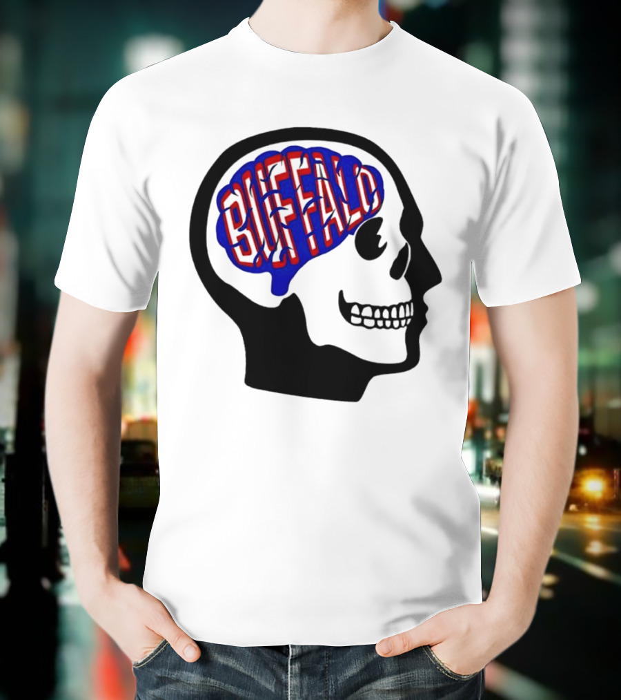 Buffalo Brain Outline In Skull T-Shirt