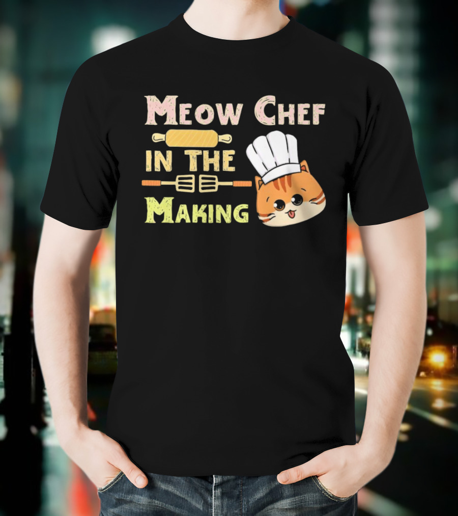 Meow Chef In The Making Rolling Pin And Whisk With Cute Cat Chef Hat T-Shirt
