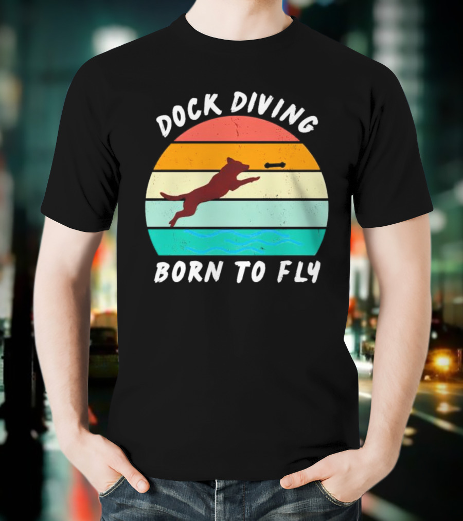 Dock Diving Born To Fly Vintage Retro Stripes Dog T-Shirt