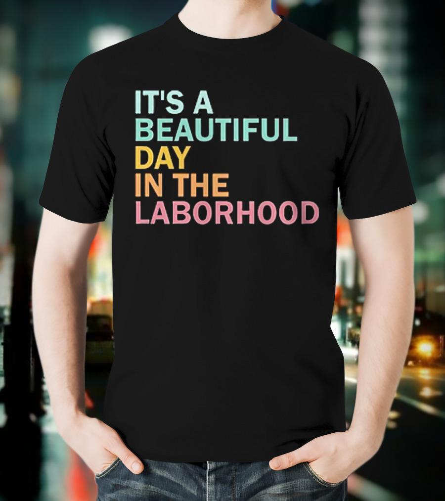 IT'S A BEAUTIFUL DAY IN THE LABORHOOD T-Shirt made from pre-shrunk ring-spun cotton. This t-shirt is designed with attention to material and construction for everyday wear.