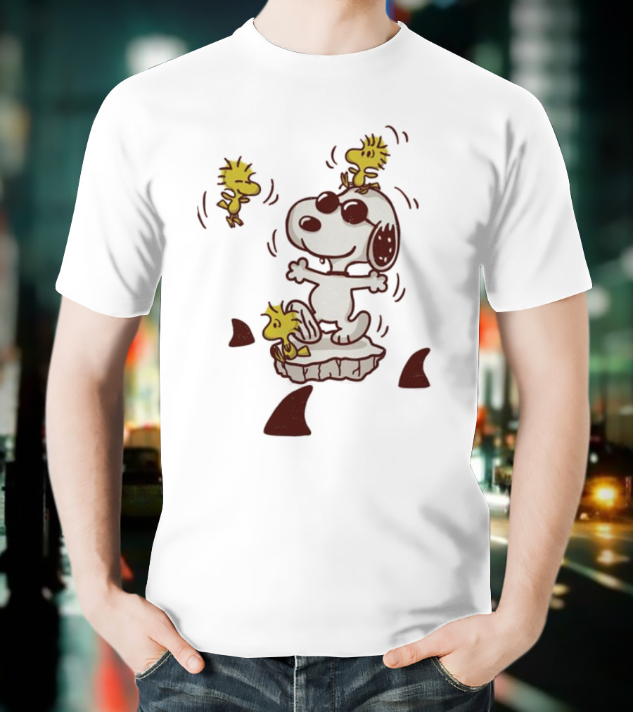 Snoopy And Woodstock Peanuts Dangerous Waters Shark Alert T-Shirt