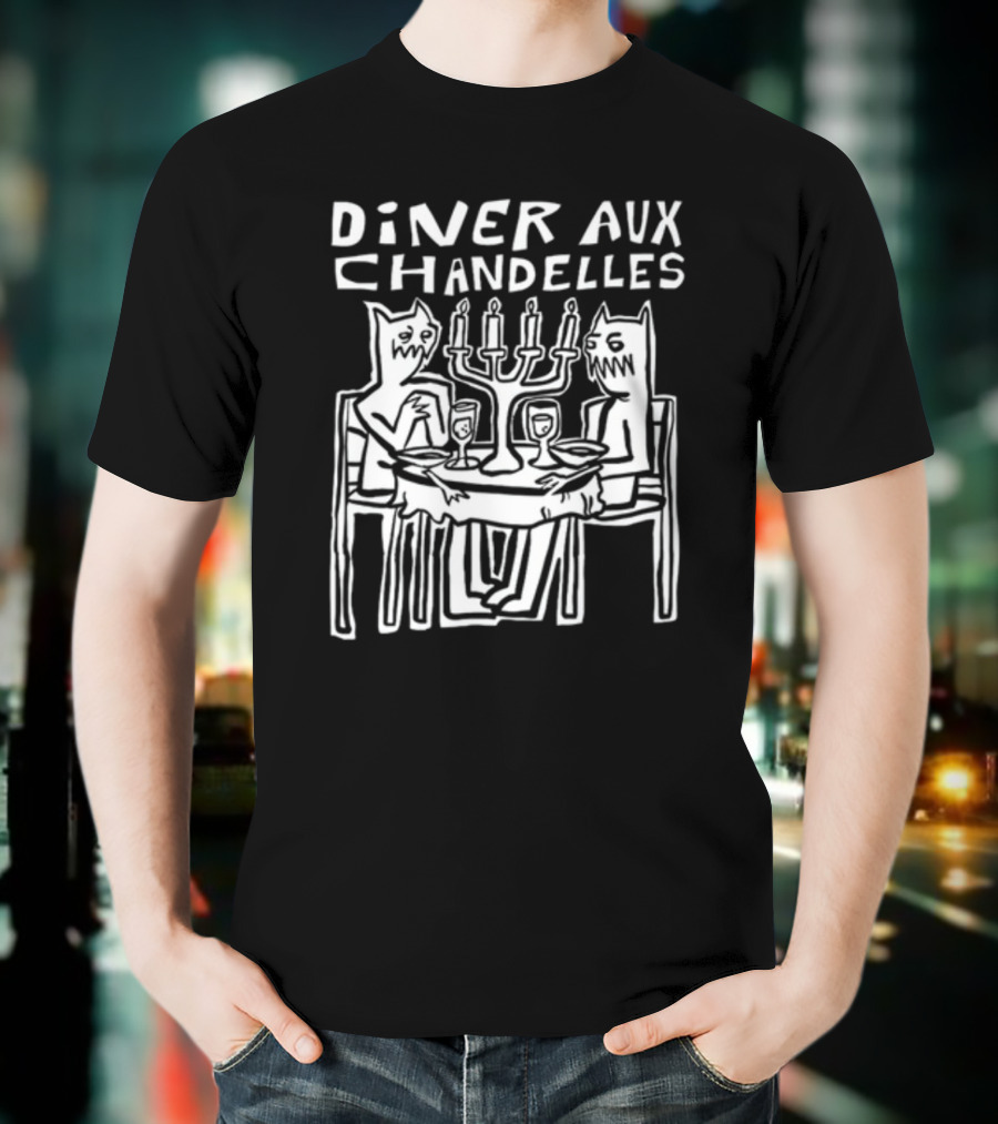 Iskream5 Diner Aux Chandelles Candlelit Dinner With Cat Creatures T-Shirt