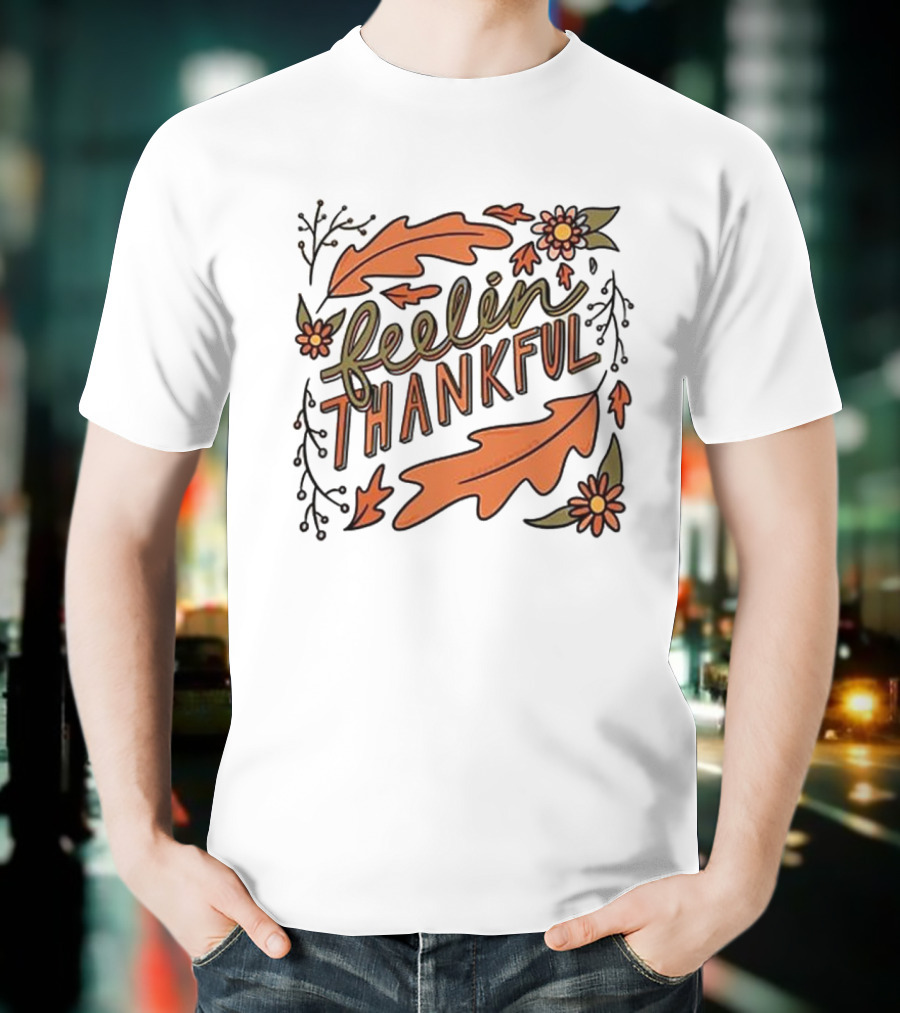 Feelin Thankful Autumn Leaves And Flowers T-Shirt