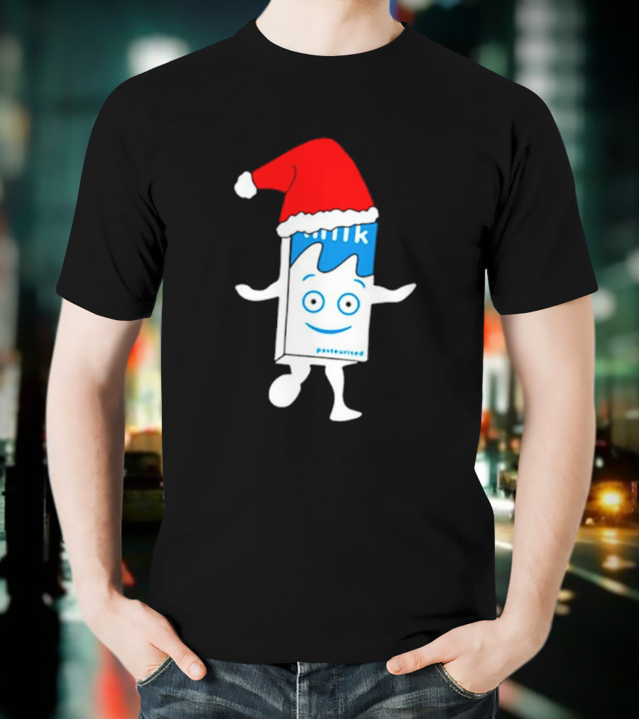 Sana Pasteurized Milk Carton With Christmas Santa Hat T-Shirt