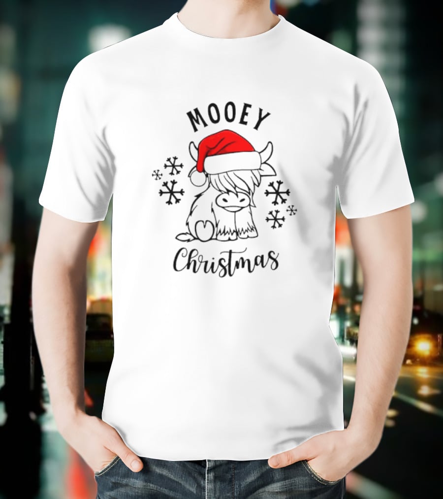 Mooey Christmas Santa Hat Snowflakes T-Shirt