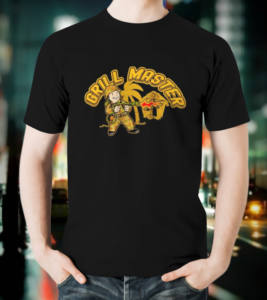 Grill Master BBQ Soldier Tropical Flame Hut T-Shirt