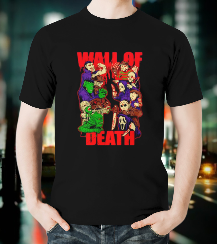 Wall of Death Monster Horror Icons Collage T-Shirt made from pre-shrunk ring-spun cotton. This t-shirt is designed with attention to material and construction for everyday wear.