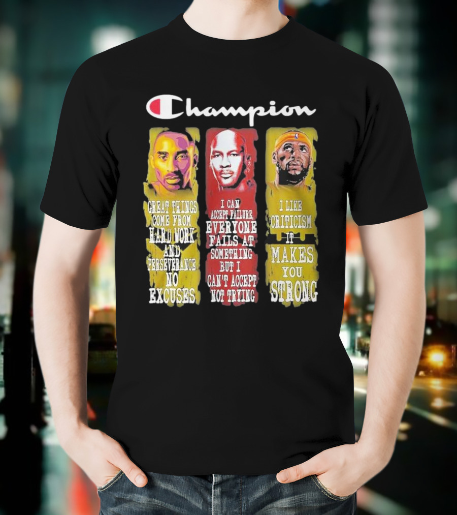 Champion Kobe Bryant LeBron James Michael Jordan Great Things Come From Hard Work T-Shirt