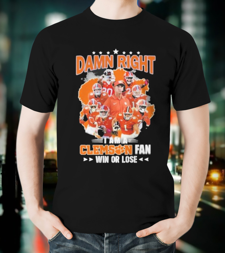 Damn Right I Am A Clemson Fan Win Or Lose Clemson Tigers Champion Team T-Shirt