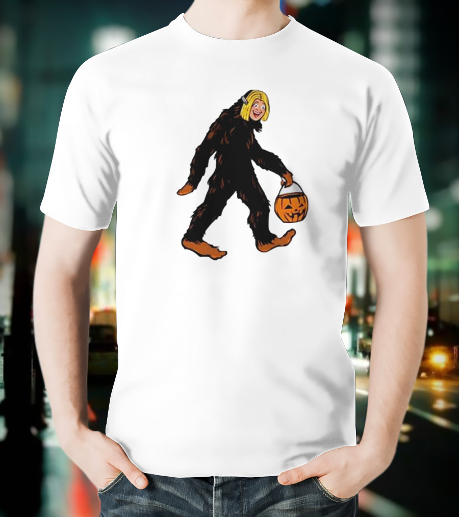 Mystical Halloween Sasquatch Holding Pumpkin Bucket Spooky Costume T-Shirt