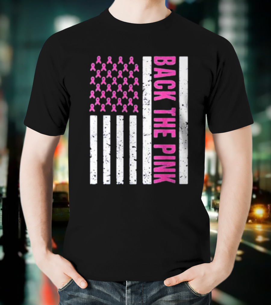 Back The Pink Breast Cancer Awareness American Flag Ribbons T-Shirt