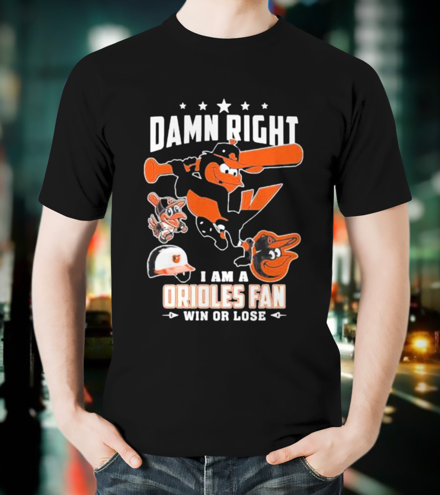 Damn Right I Am A Orioles Fan Win Or Lose Baltimore Baseball Mascots T-Shirt