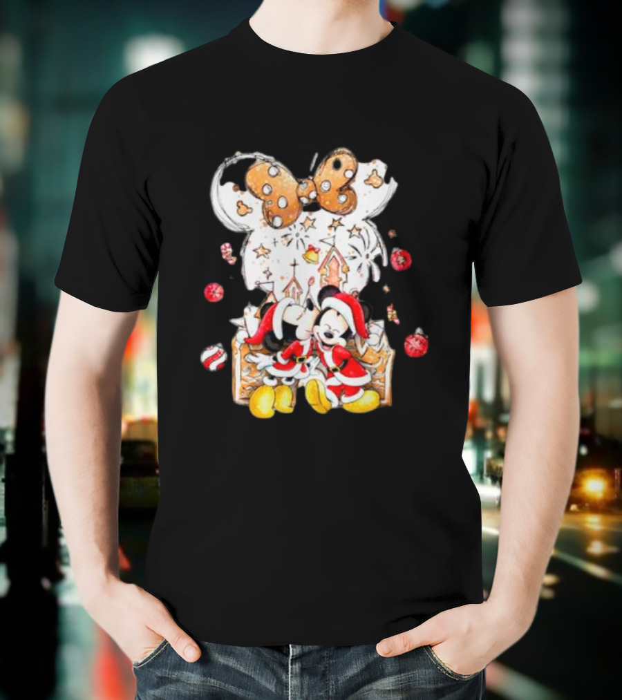 Mickey And Minnie Christmas Castle Gingerbread Mouse Ears Holiday Scene T-Shirt