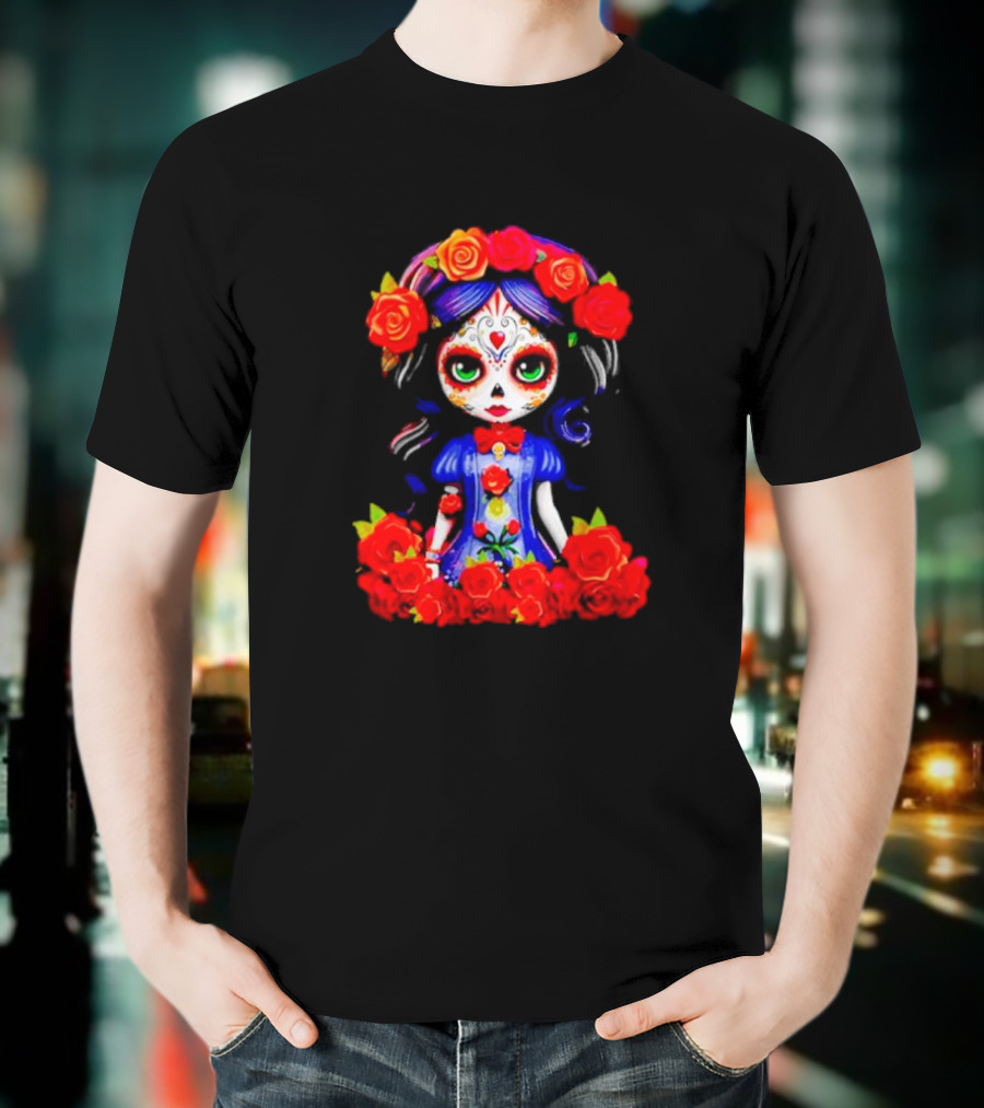 Women LA Catrina Day of the Dead Floral Rose Adorned T-Shirt made from pre-shrunk ring-spun cotton. This t-shirt is designed with attention to material and construction for everyday wear.
