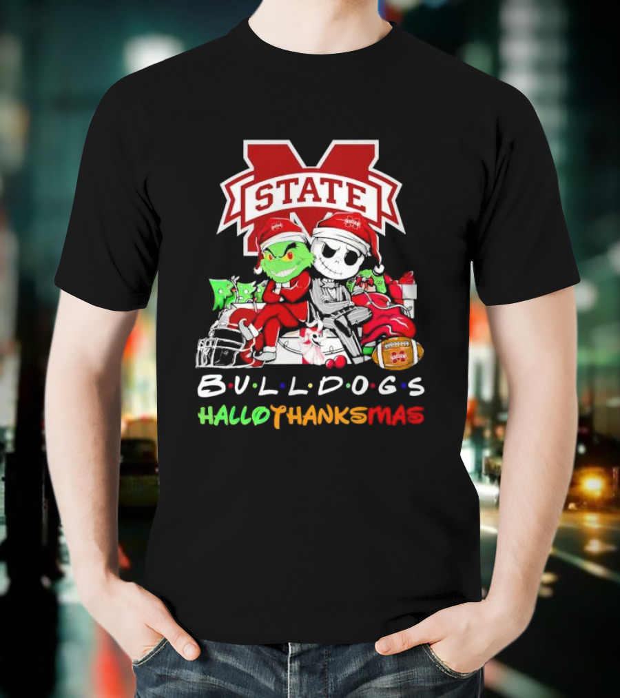 State Bulldogs Grinch And Jack Skellington HalloThanksMas T-Shirt