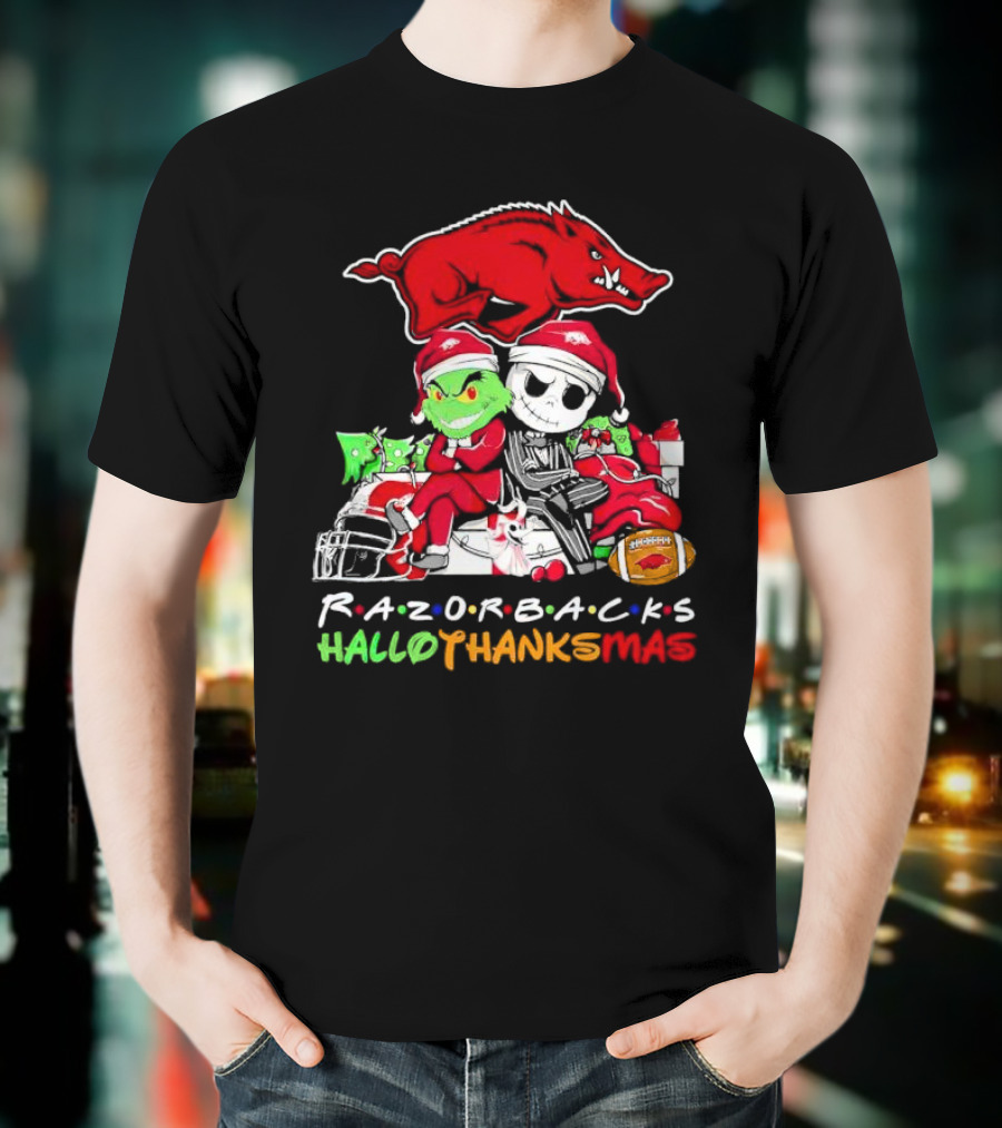 Razorbacks Grinch Jack Skellington Friends HalloThanksMas T-Shirt