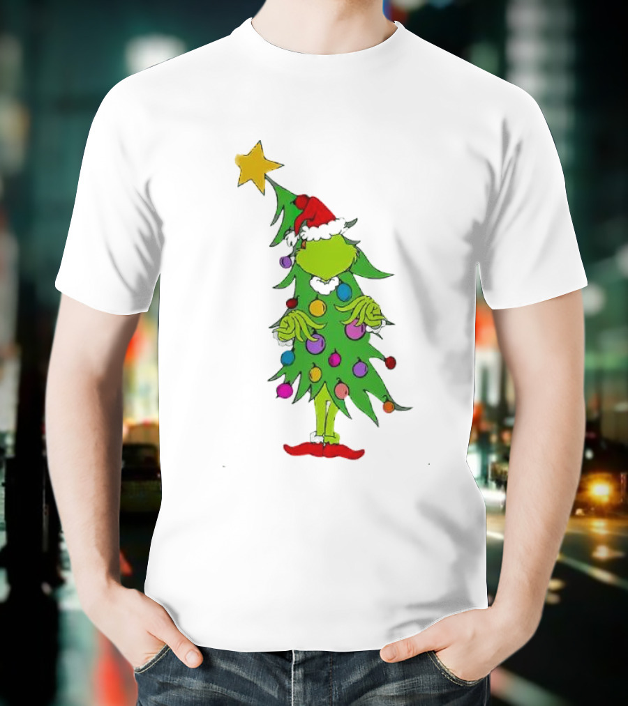 Grinch Christmas Tree Costume With Star And Ornaments T-Shirt