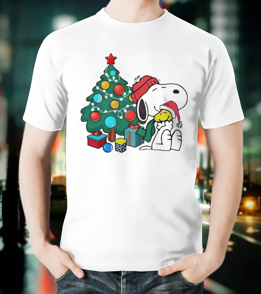 Snoopy Woodstock Christmas Tree Hug Gifts T-Shirt made from pre-shrunk ring-spun cotton. This t-shirt is designed with attention to material and construction for everyday wear.