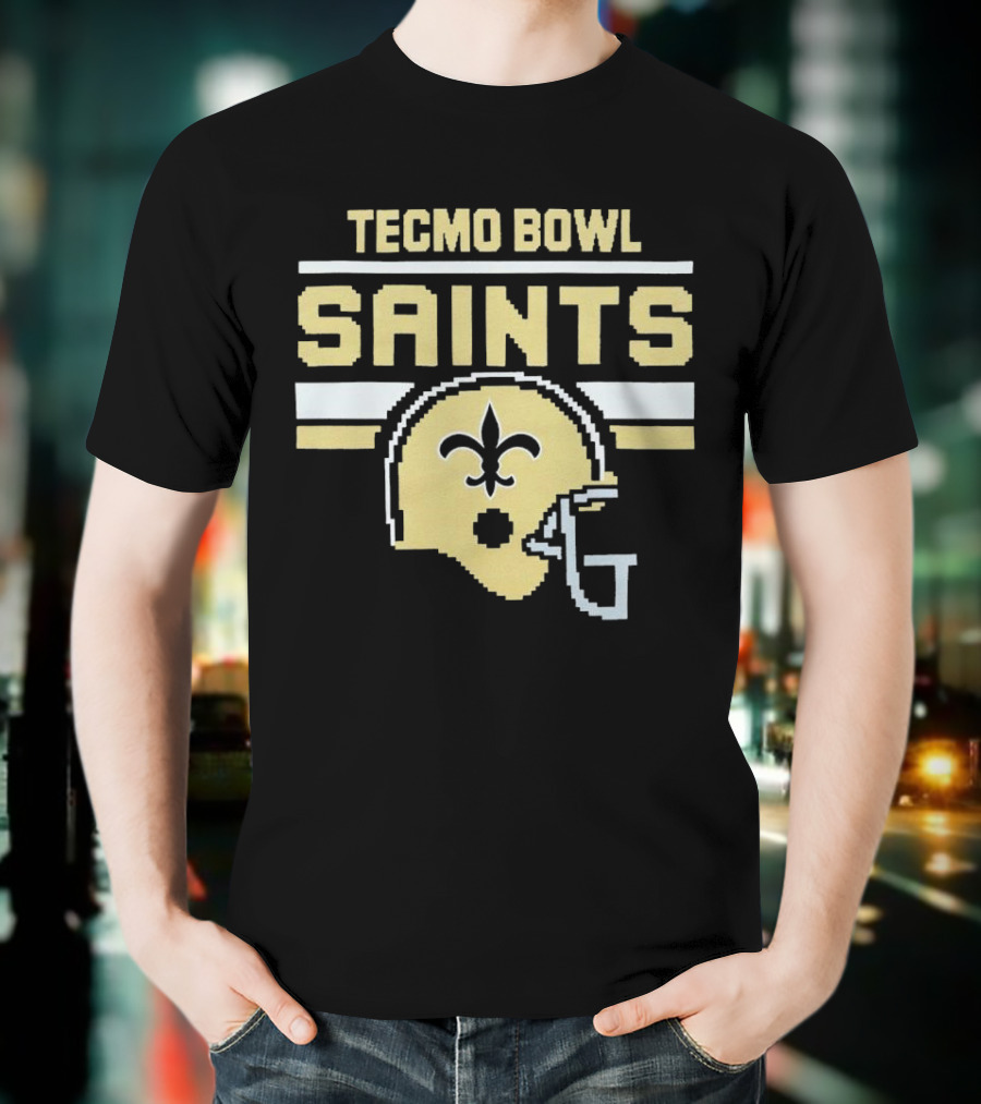 Tecmo Bowl Saints New Orleans Retro Football Helmet T-Shirt made from pre-shrunk ring-spun cotton. This t-shirt is designed with attention to material and construction for everyday wear.