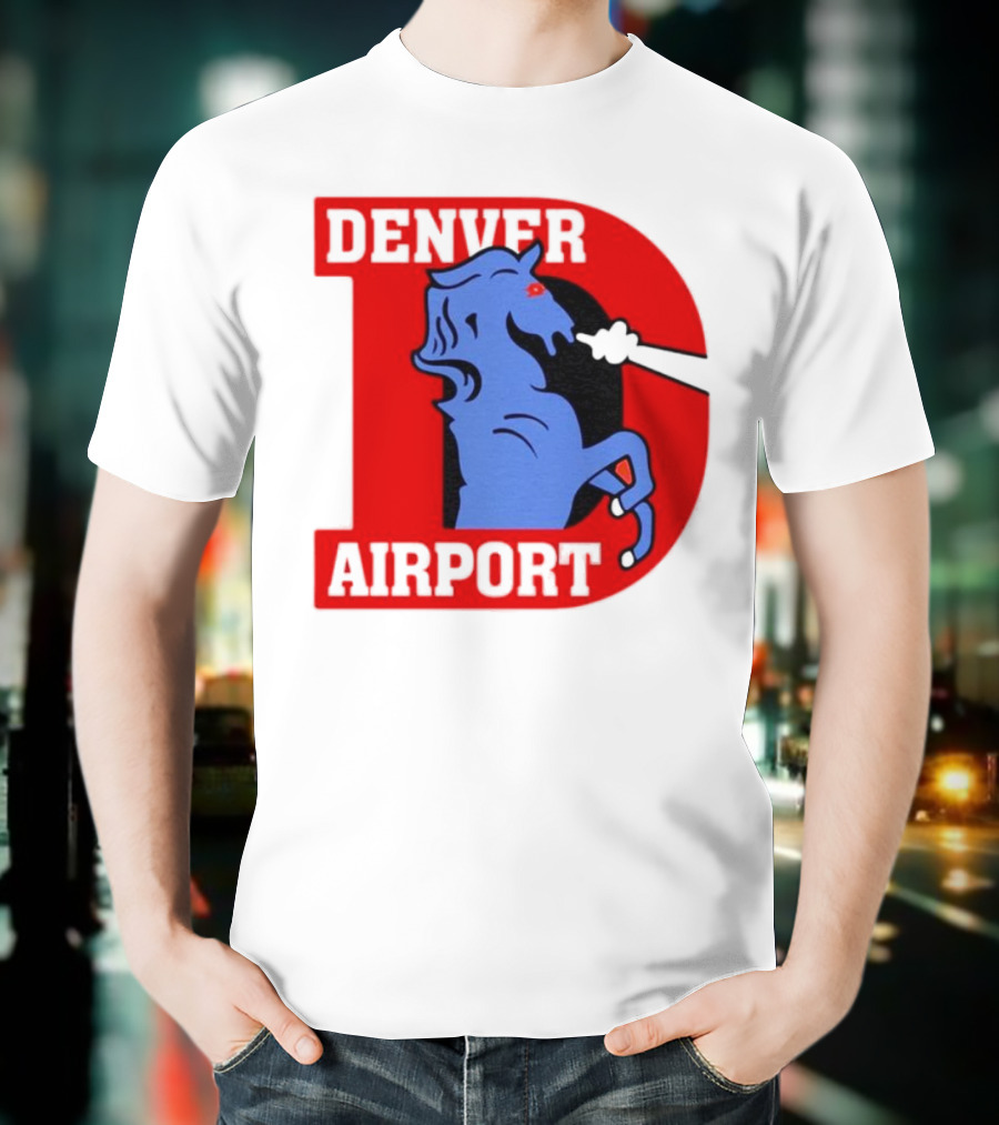 Denver Airport Blue Mustang Icon With Red Letter D T-Shirt