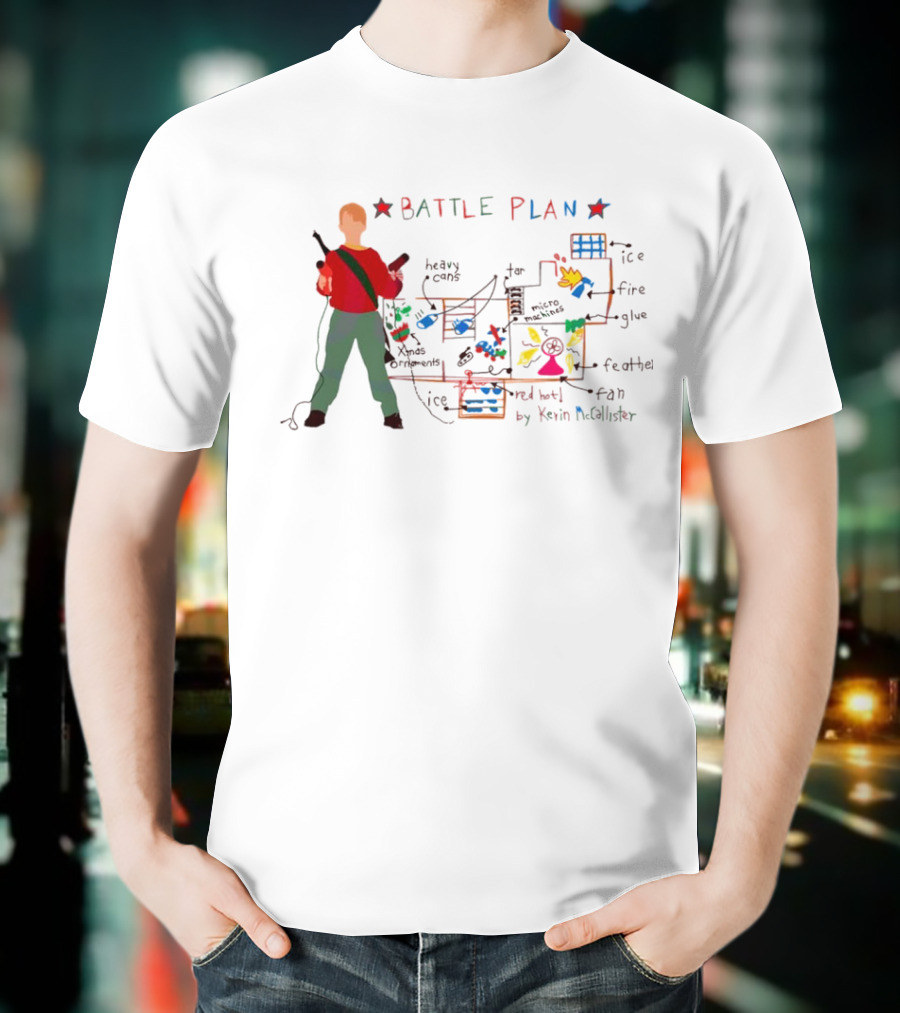 Home Alone Battle Plan Ice Fire Glue Feathers T-Shirt made from pre-shrunk ring-spun cotton. This t-shirt is designed with attention to material and construction for everyday wear.