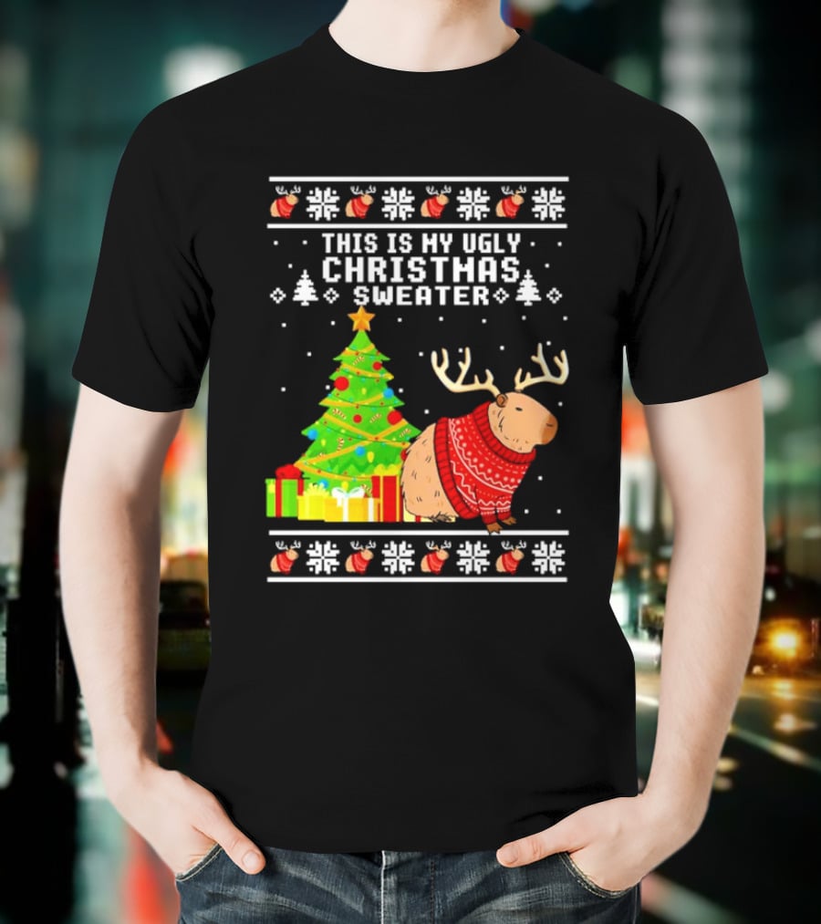 This Is My Ugly Christmas Sweater Capybara Reindeer T-Shirt