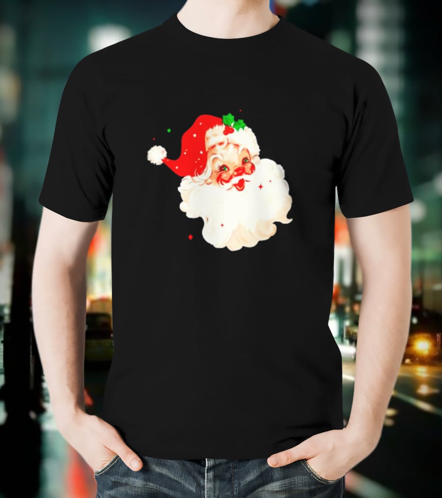 Santa Christmas Vintage Retro Style Holly Berries T-Shirt
