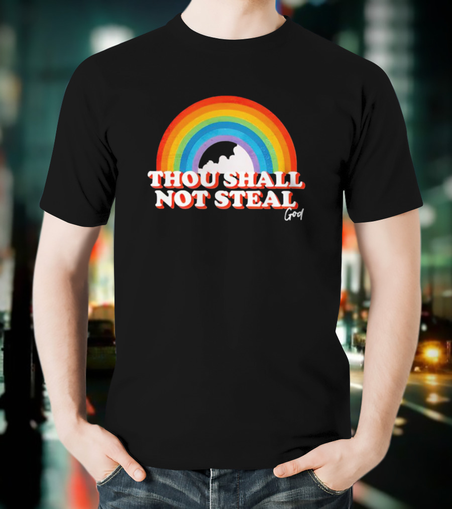 Rainbow Thou Shall Not Steal God Cloud T-Shirt made from pre-shrunk ring-spun cotton. This t-shirt is designed with attention to material and construction for everyday wear.