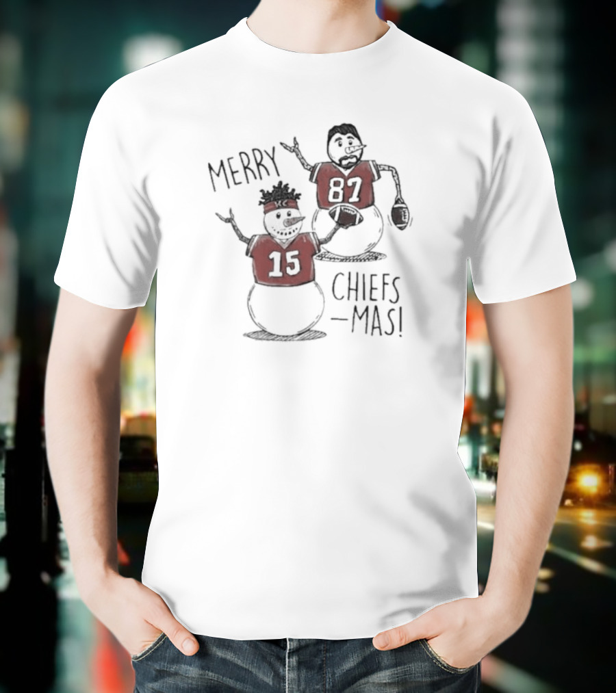 Kansas City Chiefs Snowman Player Merry Chiefsmas 15 87 T-Shirt