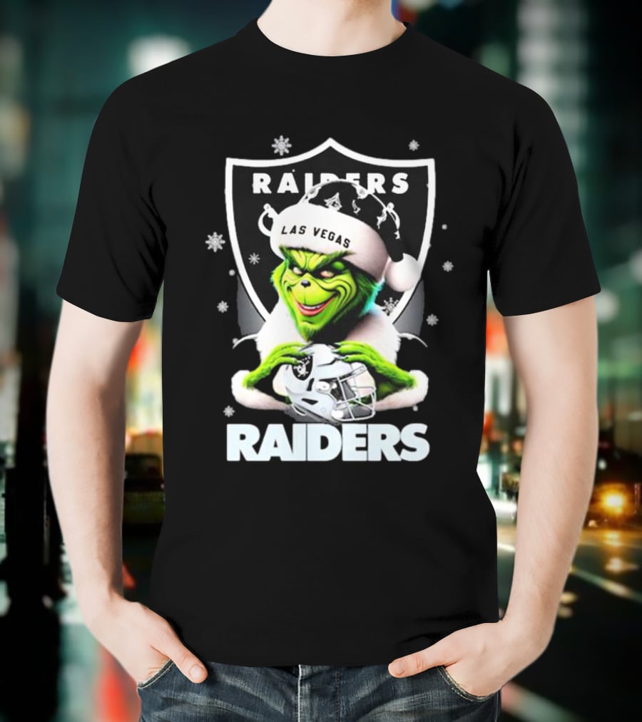Las Vegas Raiders Grinch Santa Merry Christmas Snowflakes T-Shirt made from pre-shrunk ring-spun cotton. This t-shirt is designed with attention to material and construction for everyday wear.