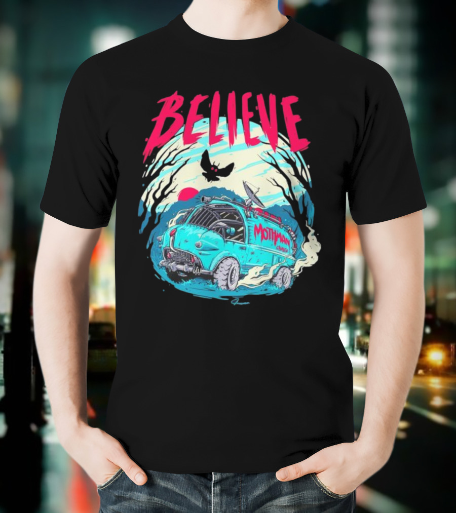 Believe Mothman Shadow Van Adventure T-Shirt made from pre-shrunk ring-spun cotton. This t-shirt is designed with attention to material and construction for everyday wear.