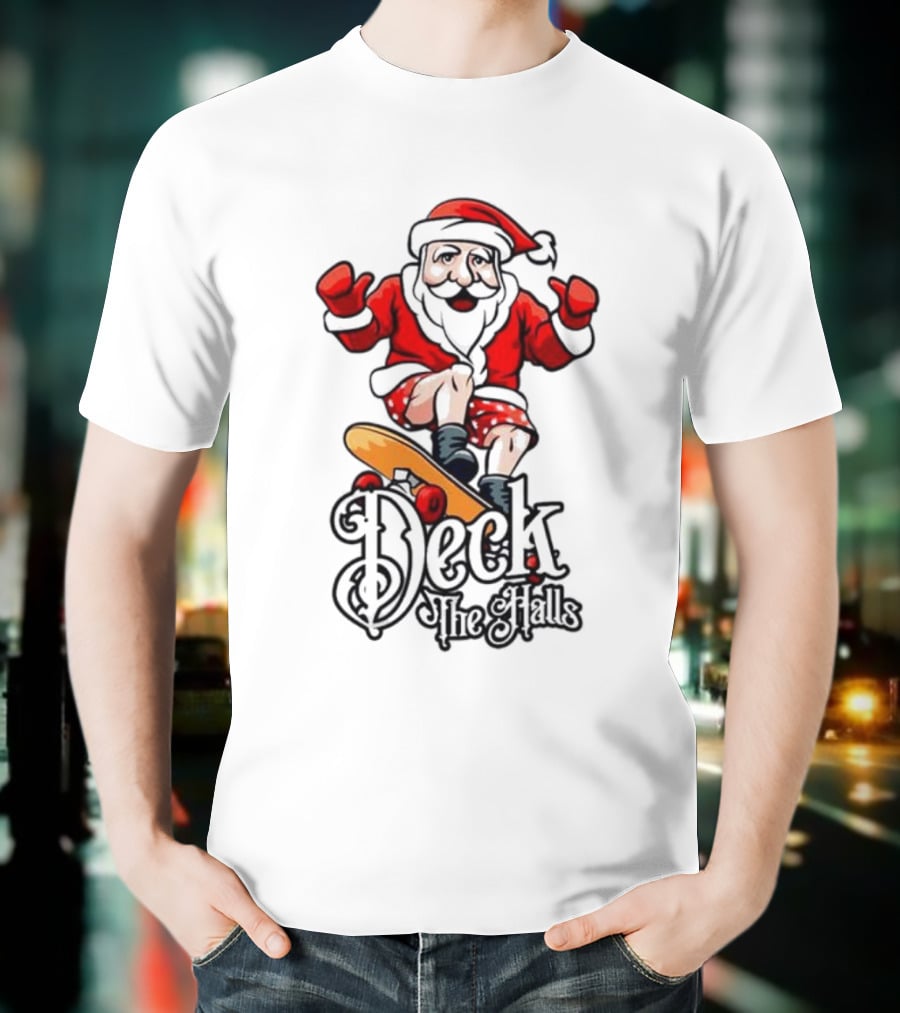 Skateboarding Santa Claus Deck The Halls Christmas Holiday Fun T-Shirt