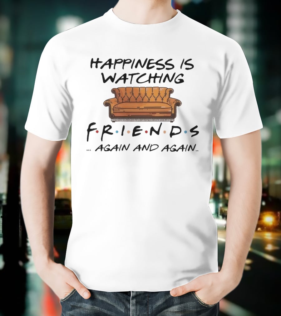 Happiness Is Watching Friends Again and Again T-Shirt made from pre-shrunk ring-spun cotton. This t-shirt is designed with attention to material and construction for everyday wear.