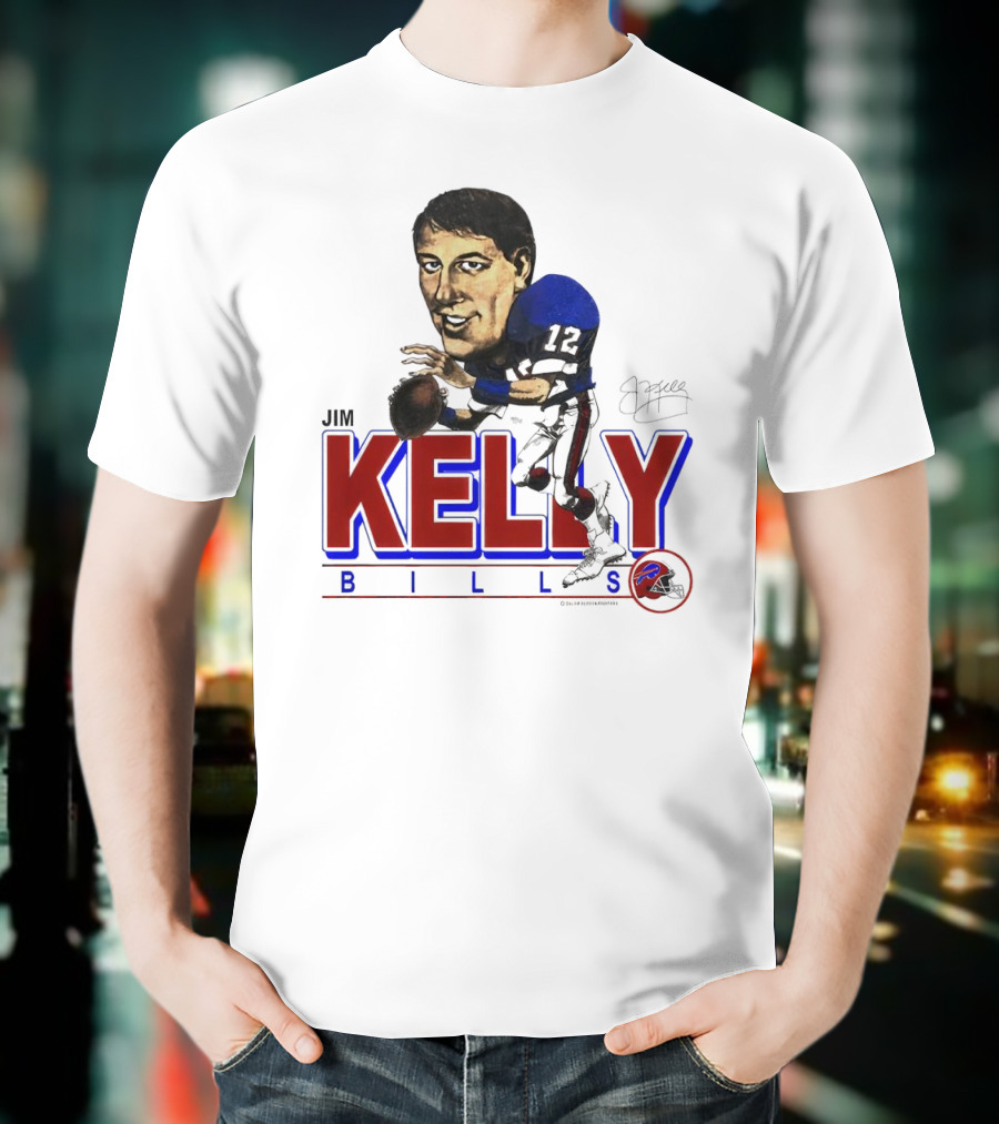 JIM KELLY BUFFALO BILLS SIGNATURE CARICATURE KELLY BILLS T-Shirt made from pre-shrunk ring-spun cotton. This t-shirt is designed with attention to material and construction for everyday wear.
