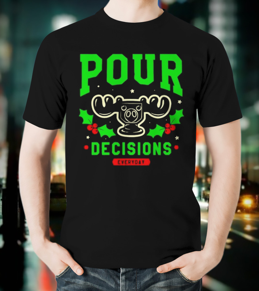 Pour Decisions Everyday Christmas Moose Holly T-Shirt made from pre-shrunk ring-spun cotton. This t-shirt is designed with attention to material and construction for everyday wear.