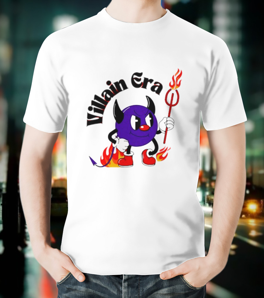 Villain Era Devil Cartoon with Pitchfork and Flames T-Shirt made from pre-shrunk ring-spun cotton. This t-shirt is designed with attention to material and construction for everyday wear.