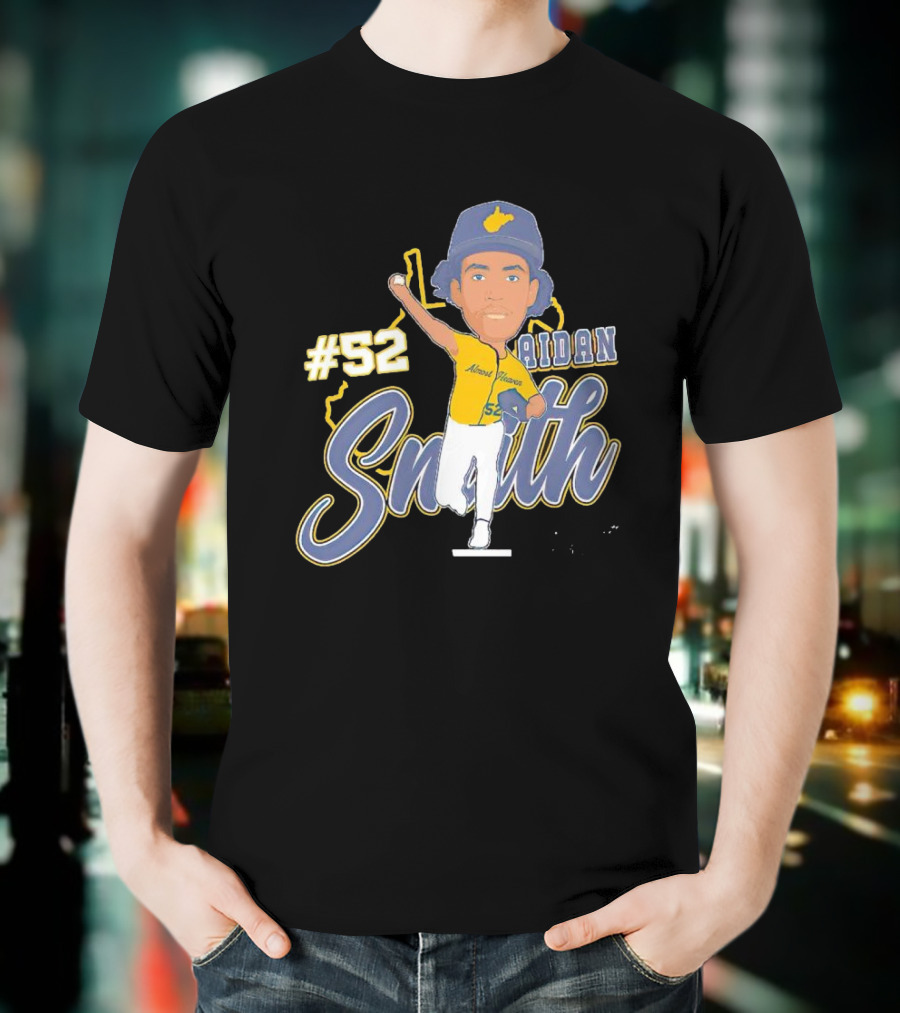 52 Aidan Smith Mountaineers Caricature Signature T-Shirt made from pre-shrunk ring-spun cotton. This t-shirt is designed with attention to material and construction for everyday wear.