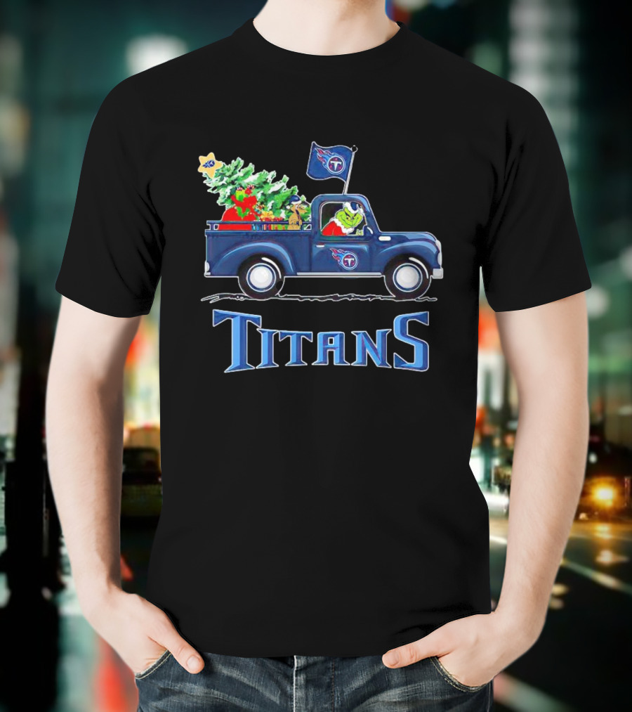 Grinch Driving Christmas Tree Truck Tennessee Titans Holiday Spirit T-Shirt