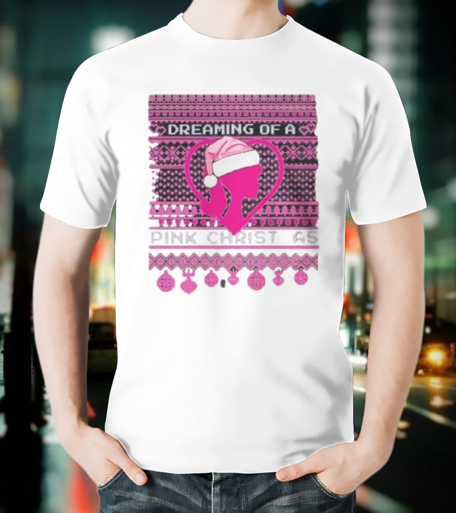 Dreaming Of A Pink Christmas Ugly Silhouette Santa Hat Ornaments T-Shirt