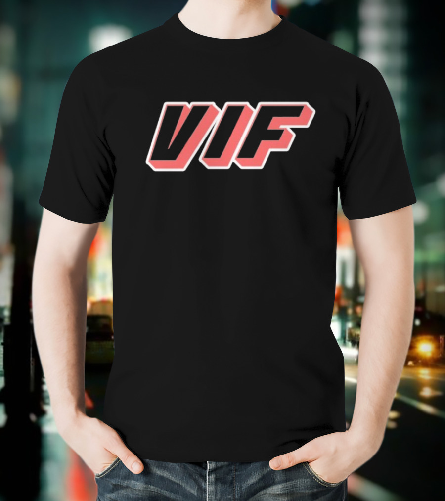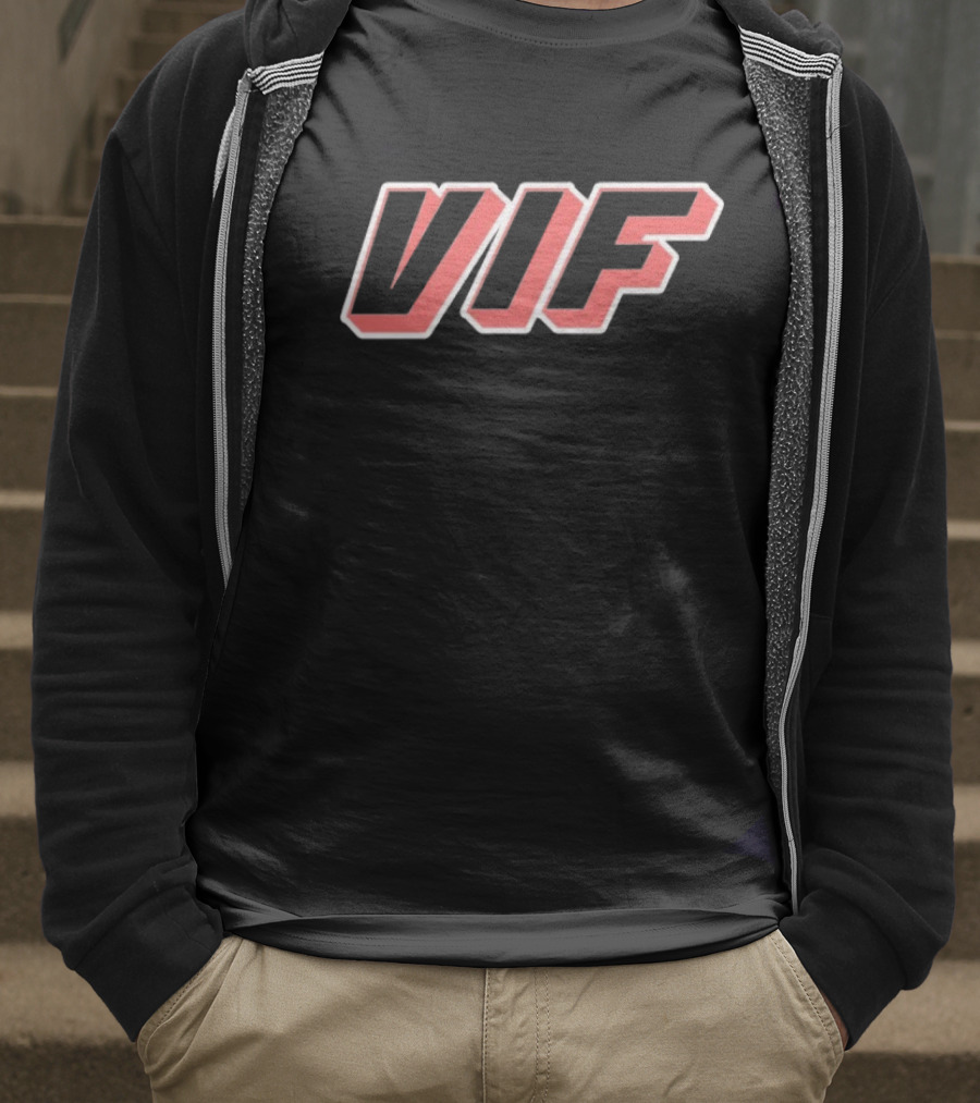 VIF Bold Red Black Outline Text T-Shirt made from pre-shrunk ring-spun cotton. This t-shirt is designed with attention to material and construction for everyday wear.