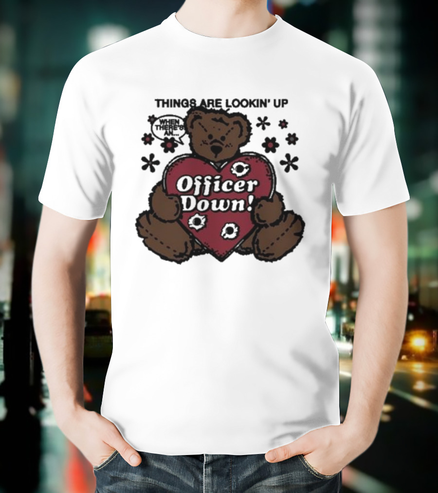 Kate Bush's Husband Things Are Lookin' Up Teddy Bear Officer Down T-Shirt made from pre-shrunk ring-spun cotton. This t-shirt is designed with attention to material and construction for everyday wear.