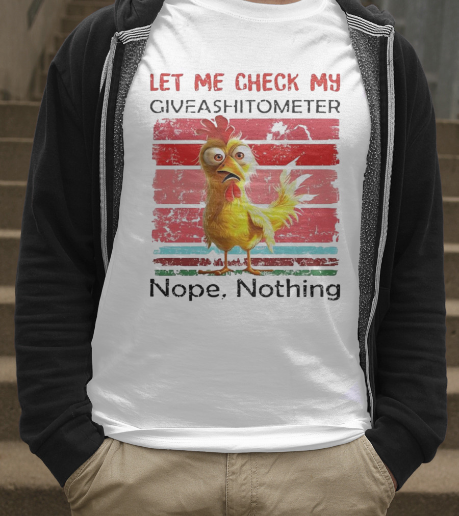 Let Me Check My Giveashitometer Chicken Nope Nothing T-Shirt made from pre-shrunk ring-spun cotton. This t-shirt is designed with attention to material and construction for everyday wear.